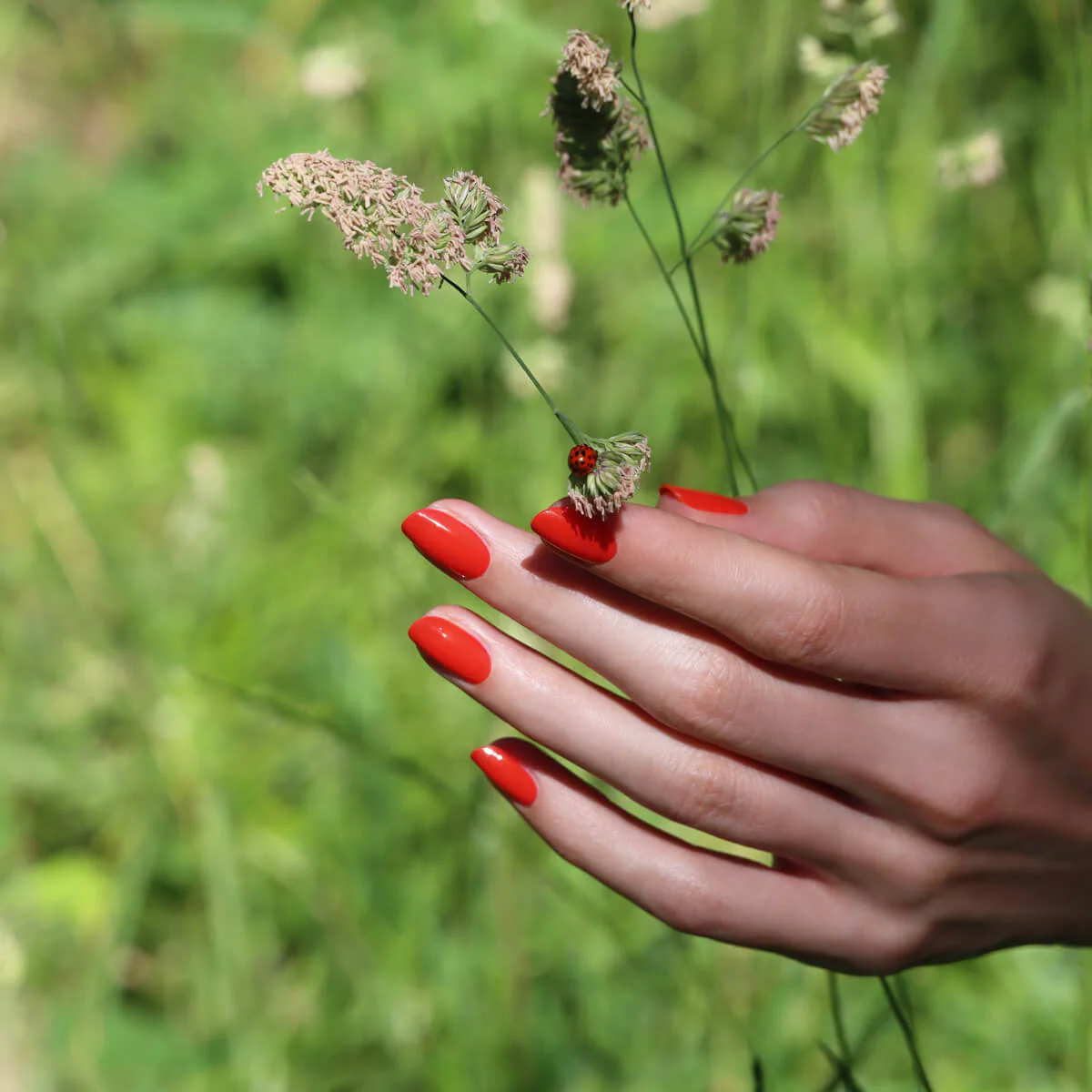 Un vernis à ongles rouge corail de la gamme Green™.